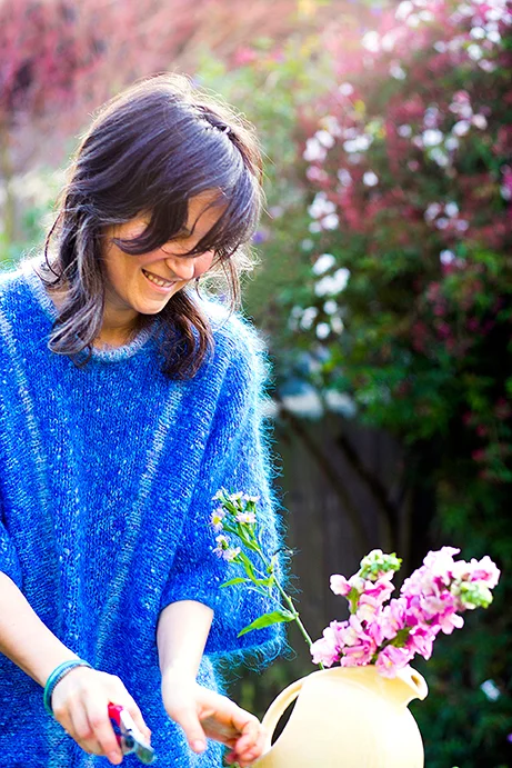 Haia creates arrangements and installations from carefully chosen materials, blending cultivated flowers with wild branches, grasses, and shrubbery, using the season’s best flora. She aims to reflect the organic beauty of northern California.